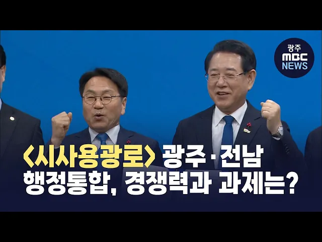 잠시 후 9시부터 생방송되는 광주MBC 시사용광로에서는성공적인 광주·전남 행정통합을 위한 과제를 점검합니다.오늘 방송에는 박균택 더불어민주당 국회의원,신용한 지방시대위원회 부위원장,강위원 전남도 경제부지사가 출연해 지역소멸과 산업 정체라는 위기 속에서가시화되는 행정통합의 준비 상황을 알아보고,통합이 가...