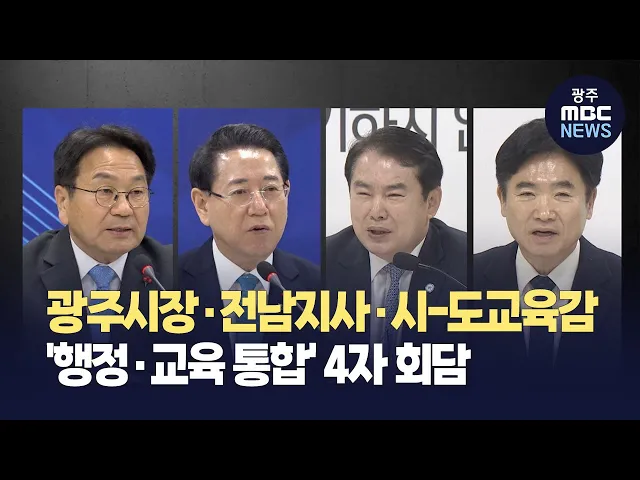 광주시장과 전남지사, 시·도 교육감이시·도 행정과 교육 통합에 대한 논의를 위해오늘(14) 4자 회담을 갖습니다.강기정 시장과 김영록 지사,그리고 이정선, 김대중 시·도 교육감은내일(14) 오후 국회 인근에서행정과 교육 통합과 관련한 첫 4자 회동을 엽니다.당초 4자 회동은 촉박한 일정 조율 문제로 무산될 뻔 했지만, ...