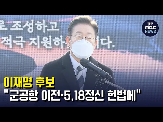 (앵커) 이재명 더불어민주당 대통령 후보가 광주를 찾아 광주 공약을 발표했습니다. 지역 숙원 사업인 군공항 이전 등을 공개적으로 약속했는데요. 경기도 순회 일정까지 바꿔가면서 광주를 찾아 표심을 단속했습니다. 송정근 기자입니다. (기자) 이재명 더불어민주당 대통령 후보가 광주를 찾았습니다. 설 연휴를 코 앞에 ...