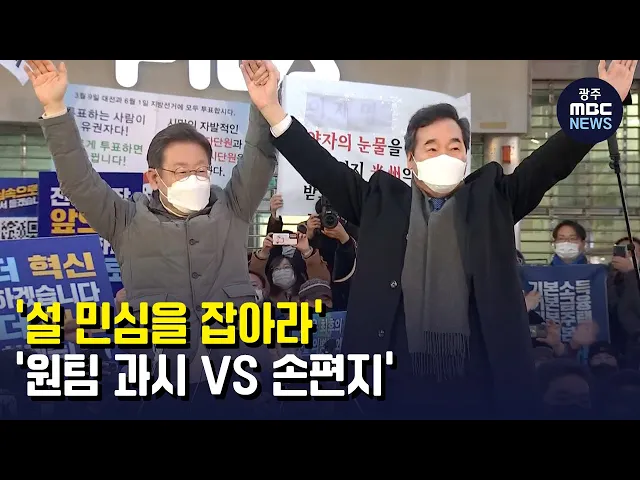 (앵커) 대선 여론 향배의 분수령이 될 설 연휴를 앞두고 여,야가 호남 민심잡기에 총력전을 펼치고 있습니다. 이재명 후보는 단단한 원팀 행보를 과시했고, 국민의힘은 윤석열 후보의 손편지로 호남의 마음을 잡겠다며 맞불을 놓고 있습니다. 한신구 기자의 보도 (기자) 이재명 더불어민주당 후보가 이낙연 전대표와 함께 ...