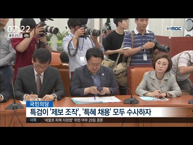 (앵커) 지역 정치권은 일제히 비난 성명을 냈습니다. 시민단체는 당의 해체를 요구했습니다. 호남을 기반으로 하는 국민의당이 창당 이후 최대 위기에 빠졌습니다. 김철원 기자입니다. (기자) 제보조작 파문을 일으킨 국민의당을 맹비난하는 지역 정치권과 시민단체의 성명이 줄을 이었습니다. '군사독재시절에나 나올 법한...