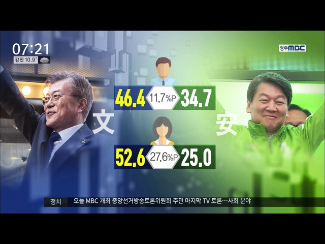 (앵커) 광주 전남 발전을 위해서 어떤 후보가 당선되는 게 좋을 지도 물었습니다. 여기서도 문재인 후보가 안철수 후보를 앞섰습니다. 꼭 투표하겠다는 응답은 95%를 넘었고, 사전 투표하겠다는 응답자도 40퍼센트 가까이 됐습니다. 채솔이 기자가 보도합니다. (기자) (CG) 광주 전남 발전에 도움이 될 후보로 응답자의 44....