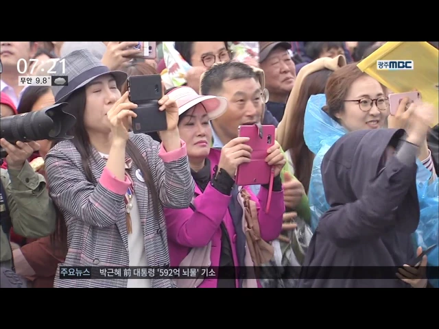 오늘(18일) 오후 6시 광주 충장로를 찾은 더불어 민주당 문재인 후보.공식 선거 운동이 본격화 된 이후 처음으로 광주를 방문해 국민통합과 지역발전을 위한 비전을 제시, 지지를 호소.또 해태 타이거즈의 레전드 김응용, 김성한 감독이 문재인 후보를 위한 첫 지원 유세에 나섰다.