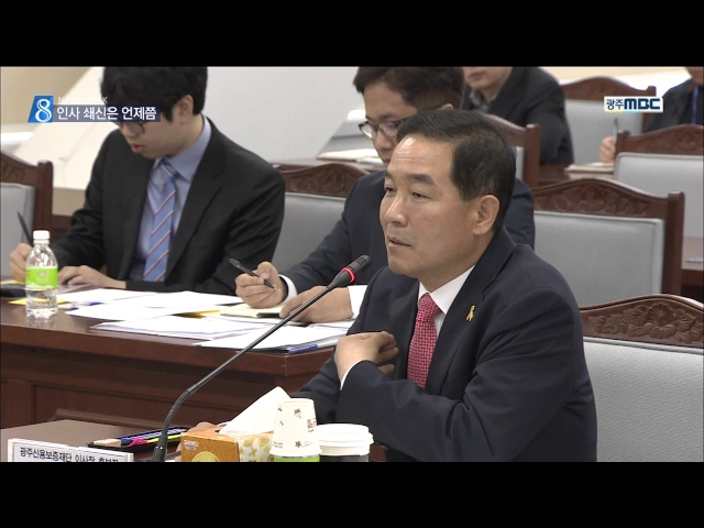 (앵커) 광주시 산하기관에 대한 인사 쇄신 작업이 인물난 때문에 더디게 진행되고 있습니다. 인사 쇄신은 커녕 인사 공백만 생겼다는 비판이 나오고 있습니다. 윤근수 기자 (기자) 윤장현 시장의 인사 쇄신 방침에 따라 올해 초 8개 산하기관 대표가 사표를 제출한 뒤 처음으로 열린 인사청문회. 광주신용보증재단 박종광 ...
