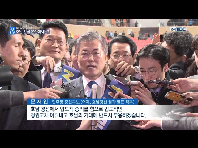 (앵커) 관심을 모았던 민주당 호남경선이 문재인 후보의 승리로 결론이 났습니다. 국민의당에서는 안철수 후보가 압승을 거두면서 두 후보가 본선에서 만날 가능성이 더 커졌습니다. 본선에서는 호남민심이 어떤 선택을 할 지가 벌써부터 관심입니다. 김철원 기자입니다. (기자) 문재인 후보는 민주당 호남지역 경선에서 만...