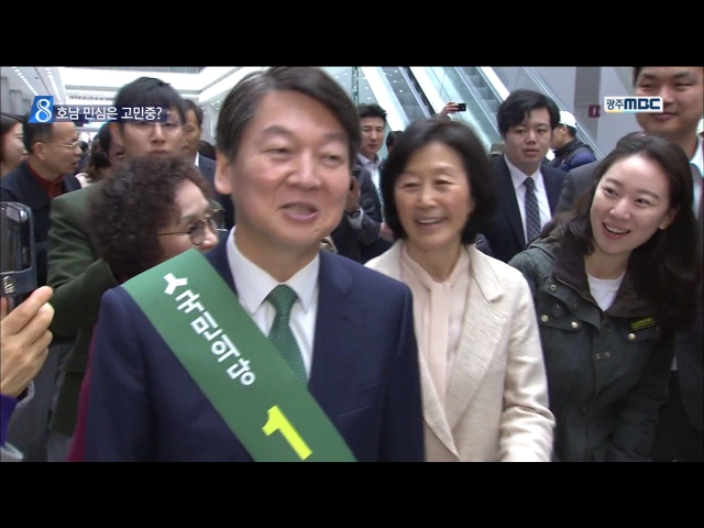 (앵커) 문재인, 안철수 두 후보의 호남 지지율 격차가 한자릿수로 좁혀졌다는 여론조사 결과가 나왔습니다. 본선 때까지 선택지를 늘려놓겠다는 호남의 민심이 반영된 것으로 보입니다. 윤근수 기자 (기자) (CG)한국갤럽의 정기 여론조사 결과 이번 주 호남지역의 대선 후보 지지율이 문재인 후보 38%, 안철수 후보는 30%로...