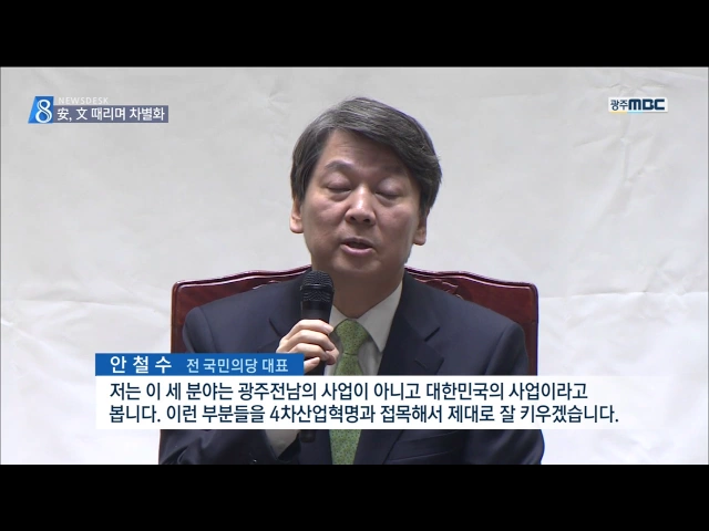 (앵커) 국민의당 안철수 전 대표가 광주에서 민주당의 대선 후보, 특히 문재인 전 대표를 비판하며 대립각을 세웠습니다 민주당에서는 경선 절차가 본격화하면서 후보간의 경쟁이 치열해지고 있습니다. 윤근수 기자 (기자) 3주만에 광주를 다시 찾은 국민의당 안철수 전 대표는 미래 대비에 적합한 후보라는 점을 부각시키...