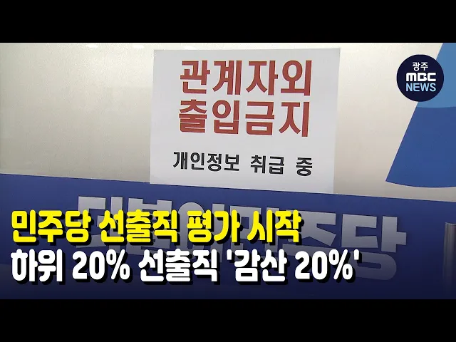 (앵커)민주당이 내년 지방선거를 앞두고소속 단체장과 지방의원에 대한 평가를 시작합니다.하위 20%에 포함될 경우 감점 패널티를 받게 되는데요.이렇게 되면, 사실상 공천을 받기 어려워지는 만큼선출직들의 긴장감이 고조되고 있습니다.송정근 기자입니다.(기자)더불어민주당이 내년 지방 선거를 앞두고선출직 평가에 돌...