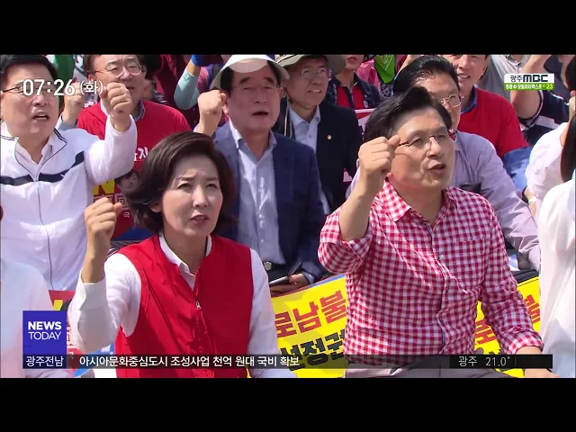 (앵커) 지난주 자유한국당 부산 집회에서 있었던 나경원 원내대표의 지역감정 조장 발언에 대해 정치권 안팎에서 비난이 쏟아지고 있습니다. 광주 시민단체들은 자유한국당에게 이제 그만 해산하라고 말했습니다. 이계상 기자.. (기자) 장외투쟁을 선언한 자유한국당이 부산에서 대규모 집회를 열었습니다. 마이크를 잡은 ...