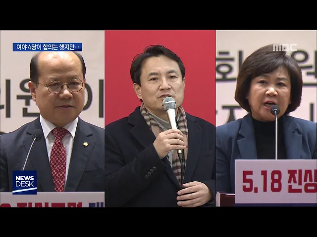 (앵커) 5.18을 왜곡하고 날조하면 처벌하도록 한 특별법 개정안을 다음달 18일 이전에 처리하자고 여야 4당이 잠정 합의했습니다. 하지만 합의가 통과를 의미하지는 않습니다. '5.18 망언'에도 솜방망이로 징계한 자유한국당이 어떻게 나오느냐에 따라 국회 통과 여부가 결정될 것으로 보입니다. 보도에 정용욱 기자입니다....
