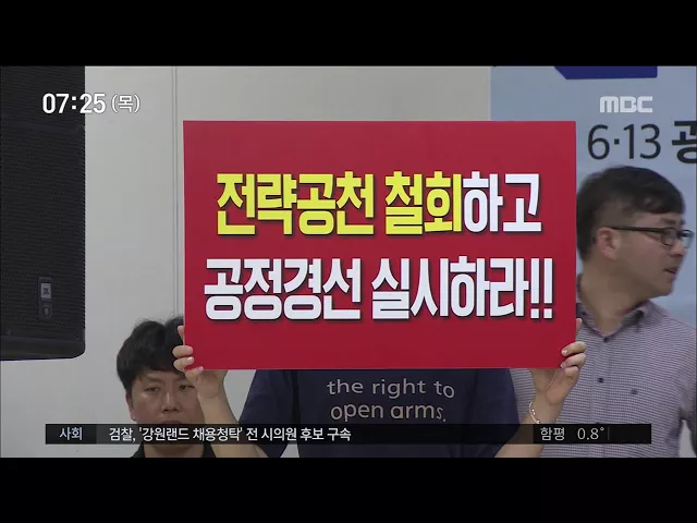 ◀ANC▶ 민주당의 경선 잡음은 또 있습니다. 심사에서 탈락한 후보들과 단수 공천를 받은 후보마저 오락가락하는 고무줄 기준에 바난을 쏟아내고 있습니다. 박영훈 기잡니다. ◀END▶ 더불어민주당 전남도당. 지난 7일 후보 공모 절차가 본격 시작된 이후 1인 시위와 집단 항의가 끊이지 않고 있습니다. ◀SYN▶고흥군 ...