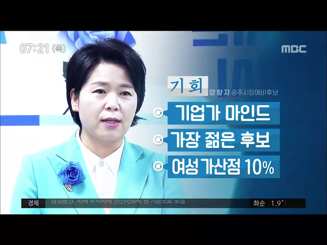 (앵커) 민주당의 광주시장 경선이 일주일 앞으로 다가왔습니다. 광주MBC는 오늘부터 사흘간 민주당 경선 후보들을 검증하는 시간을 마련했습니다. 오늘 첫 순서는 양향자 예비후보인데요.. 양 후보를 직접 만나기 전에 후보의 강점과 약점 등을 분석한 리포트를 먼저 살펴보겠습니다. 윤근수 기자입니다. (기자) (CG) 고졸 ...