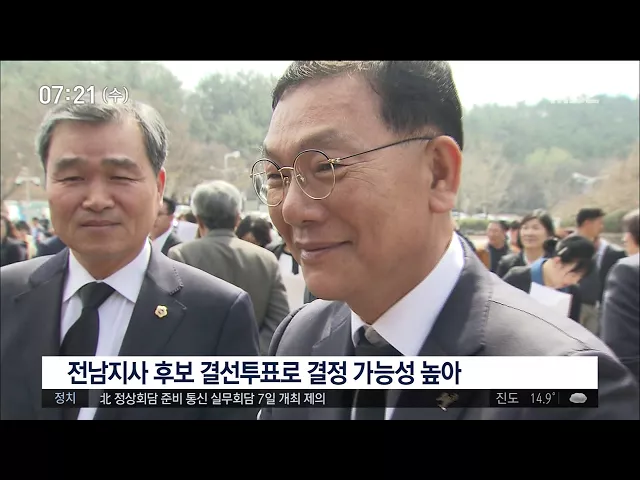 (앵커) 민주당의 전남지사 경선전도 본격화되고 있습니다. 세 명의 경선 후보가 엇비슷한 지지율을 얻고 있는 것으로 분석돼 결선 투표 때까지 후보간 경쟁이 치열할 것으로 전망됩니다. 이계상 기자... (기자) 민주당 공직선거후보자추천관리위원회가 전남지사 경선 후보 3명을 확정지었습니다. 김영록 전 농림축산식품부 ...