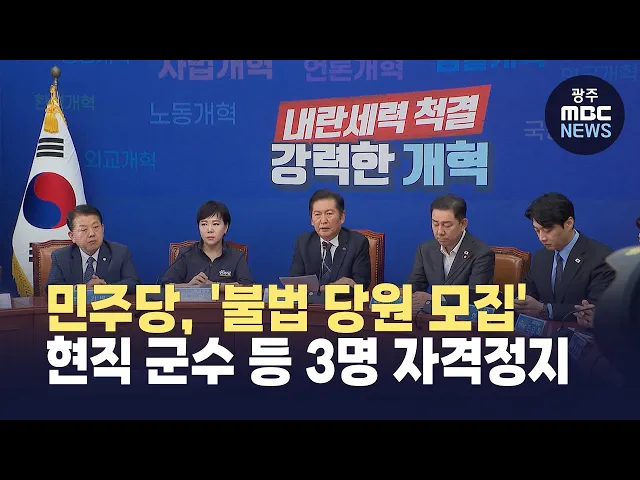 민주당이 불법 당원 모집에 관여한 현직 군수 등 전남지역 출마 예정자 3명을 중징계했습니다.민주당 윤리심판원은 불법 당원 모집으로 적발된 현직 군수와 군수 출마 예정자에게 각각 당원 자격정지 2년, 도의원 출마 예정자에게는 자격정지 3개월 처분을 결정해 최고위원회에 보고했습니다.이들은 주소지를 허위로 등록시...