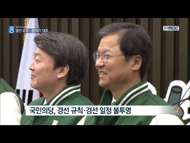 (앵커) 대통령 탄핵 심판이 임박하면서 대선 시계도 빨라지고 있습니다. 특히 민주당과 국민의당은 경선을 준비하고 있는데 두 야당의 분위기가 사뭇 대조적입니다. 윤근수 기자 (기자) 손학규 전 대표가 통합 선언 열흘만에 국민의당에 입당했습니다. ◀SYN▶손학규 (국민의당 당원 동지들과 함께 진짜 정권교체를 반드시...