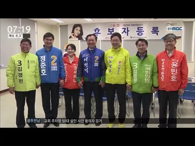 (앵커) 오는 4월 13일 치러질 국회의원선거의 후보등록이 어제(24) 시작됐습니다. 호남 제 1 야당을 두고 치열한 다툼을 벌이게 될 각 정당과 후보들은 승리를 다짐했습니다. 김인정 기자입니다. (기자) 후보등록 첫날, 오전 9시부터 일찌감치 후보등록을 마친 후보들은 다시 표밭을 향했습니다. 광주 8개 지역구에서 접수...