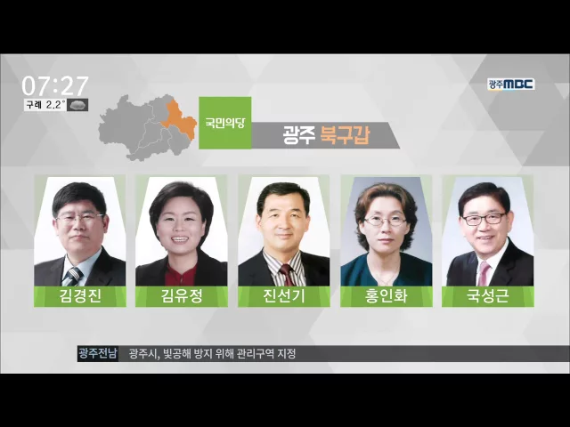 (앵커) 4.13 총선을 앞두고 각 정당들이 공천 절차에 들어갔습니다. 당내 경쟁도 뜨거워졌는데 특히 광주 남구와 북구갑 선거구에서는 예선을 통과하는 게 본선 못지않게 힘들 것으로 보입니다. 윤근수 기자 (기자) 광주 남구와 북구갑 선거구에서는 국민의당의 예선전이 뜨겁습니다. (CG)먼저 남구에서는 장병완 현 의원에...