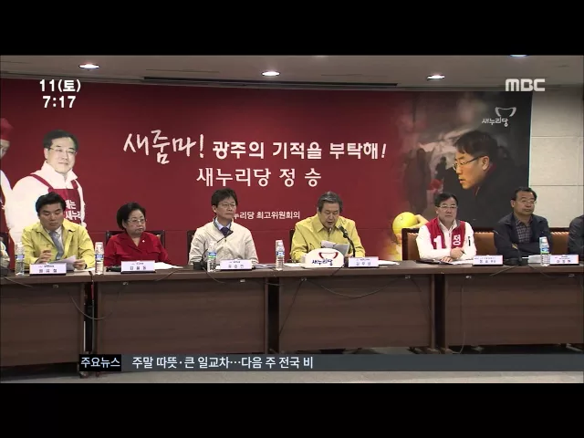 (앵커) 김무성 대표를 비롯한 새누리당 지도부가 광주에서 최고위원회의를 열었습니다. 짐작하시겠지만 보궐선거 때문입니다. 광주에 지원을 약속하면서 경쟁자들은 깎아내렸습니다. 김철원 기자입니다. (기자) 새누리당 지도부가 광주시청을 찾았습니다. 광주 서구을 보궐선거에 나선 정 승 후보 지원을 위해 지도부가 총...