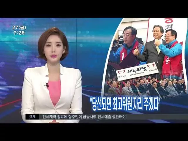 (앵커) 새누리당이 4.29 보궐선거에 승부수를 띄웠습니다. 김무성 대표는 새누리당 후보가 당선되면 최고위원 자리를 주겠다고 약속했습니다./ '제2의 이정현'을 자처하는 정승 후보를 띄우기 위해 '원조 이정현' 의원도 힘을 보탰습니다. 먼저 한신구 기자가 보도합니다. "야당의 텃밭이자 심장인 광주, 전남에서 변화의 ...