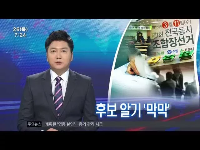 ◀ANC▶ 사상 처음 치러지는 전국 동시 조합장 선거 공식 일정이 시작됐습니다. 오늘(26)까지 후보자 등록 마치면, 13일 동안 선거운동을 할 수 있습니다. 보도에 양현승 기잡니다. ◀END▶ 조합장 선거에 나선 입지자들이 초조하게 순서를 기다립니다. 출자금과 사업이용실적 등 자격을 확인하고, 후보등록을 마쳤습니...