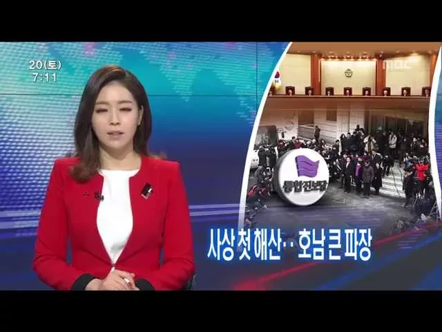 (앵커)여러분 안녕하십니까? 오늘은 12월 19일입니다.// 18대 대선이 치러진 지 꼭 2년된 날, 그리고 헌정 사상 처음으로 정당 해산이 결정된 날입니다./ 통합진보당의 해산 결정으로 광주 전남에서도 파장이 일고 있습니다.// 소속 국회의원 5명 중 한명, 지방의원 31명 중 18명이 광주 전남에 있기 때문에 파장은 어느 지...