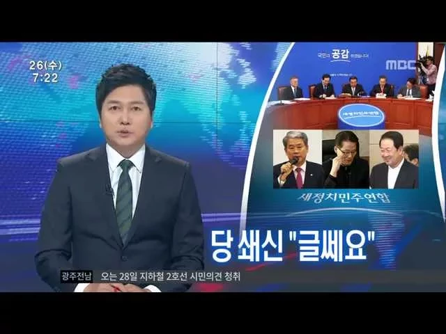 (앵커) 새정치 민주 연합이 내년 2월에 치러질 전당대회를 앞두고 당 쇄신과 호남 정치 복원을 내세우고 있습니다. 그렇지만 새로운 정치를 보여줄 인물도 비전도 사실상 없는것 아니냐는 비판이 나오고 있습니다. 이계상 기자. (기자) 새정치민주연합이 지역위원장을 공모해 선출하겠다고 약속했지만 거의 모든 지역구에서...