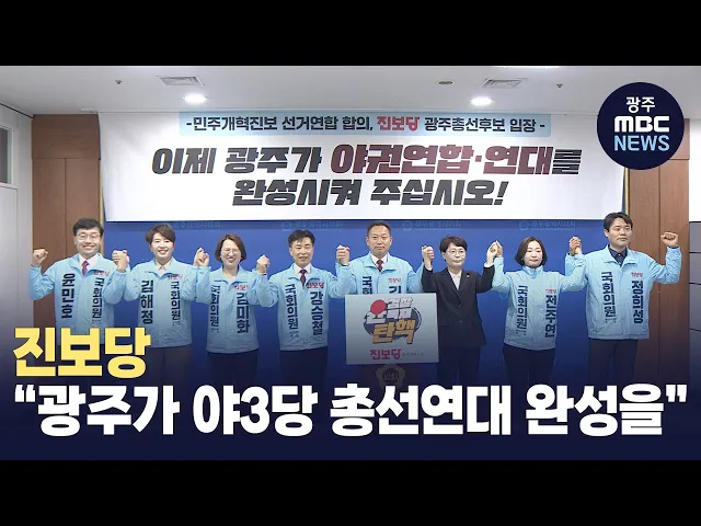 진보당 광주시당이 "광주에서 진보당 당선자를 배출시켜줄 것을 호소했습니다. 광주 7명의 진보당 총선 후보들과전종덕 진보당 비례 출마자는오늘(26) 광주시의회에서 기자회견을 열고 "야3당의 총선 연대는 성사됐지만 진보당은 전국에서 70여명이 출마를 포기하는 희생을 감내했다"며"광주시민들이 진보당 후보를 선택한...