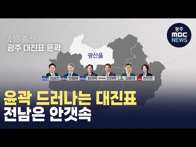 (앵커)40여일 앞으로 다가온 총선,광주 8개 선거구의 대진표가 점점윤곽을 형성하고 있습니다.아직 민주당 경선이 남은 지역은 있지만,여야 모두 본선 준비에 박차를 가하고 있습니다.반면 선거구 획정이 늦어지면서전남 10개 선거구의 대진표는 빈칸 투성입니다.주현정기자가 정리했습니다. (기자)광주의 총선시계가 빠르...