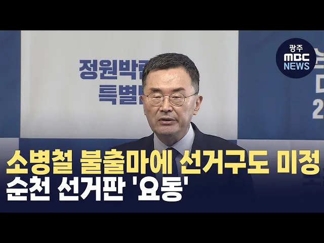 (앵커)총선 불출마를 선언했던 소병철 의원이 오늘(27) 지역에서 기자회견을 열고구체적인 불출마 이유를 밝혔습니다.소 의원에 대한 지지세가 어디로 향할지 주목되는 가운데,분구 가능성까지 커지면서순천 선거판이 크게 요동치고 있습니다.문형철 기자입니다. (기자)자신의 지역구인 순천에서 기자회견을 연 소병철 의원...