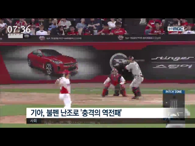 (앵커) 기아가 선두를 달리곤 있지만 불펜 불안은 여전히 해결되지 않고 있습니다. 무더운 여름철, 체력 관리와 함께 불펜 싸움이 선두 수성에 최대 관건이 될 전망입니다. 이미지 뉴스리포터입니다. (기자) .. 서둥욱 만루 홈런 ... 1회 터진 화끈한 방망이 쇼로 7대 3으로 넉넉히 앞서가던 6회 ... 기아 불펜진이 집중타...