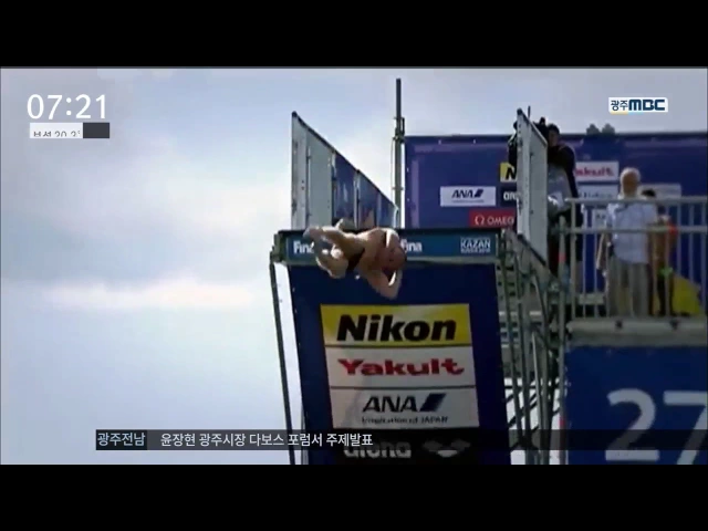 (앵커) 2년 뒤 광주에서 열릴 세계수영선수권대회에는 하이다이빙이라는 정식종목이 있습니다. 야외 높은 곳에서 펼치는 다이빙 경기인데 경기장 입지를 놓고 광주시와 조직위원회가 고민에 빠졌습니다. 김철원 기자입니다. (기자) 물에 뛰어들기 전 긴장한 표정이 역력한 다이빙 선수. 선수의 준비동작을 포착하던 카메라 ...