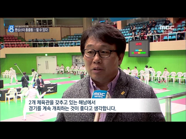 ◀ANC▶ 펜싱 시즌 개막을 알리는 전국 최대규모의 회장배 선수권 대회가 해남에서 열리고 있습니다. 리우올림픽에서 '할수 있다'로 국민적 관심을 모은 박상영 선수 등 국가대표만 40명이 출전해 화려한 기량을 선보이고 있습니다. 신광하 기자가 보도합니다. ◀VCR▶ 칼끝이 부딪히는 경쾌한 소리와 함께 공격 성공을 ...