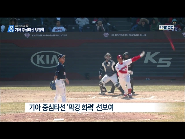 (앵커) 프로야구 시범경기가 시작됐습니다. 11번째 우승 신화에 도전하고 있는 기아는 올해 막강한 중심 타선과 외국인 선수들의 활약이 기대되고 있습니다. 이계상 기자입니다. (기자) 지난해 한국시리즈 우승컵을 들어올린 두산베어스를 상대로 한 첫 시범경기, 올 시즌부터 호랑이군단에 합류한 최형우는 첫 타석에서 초...