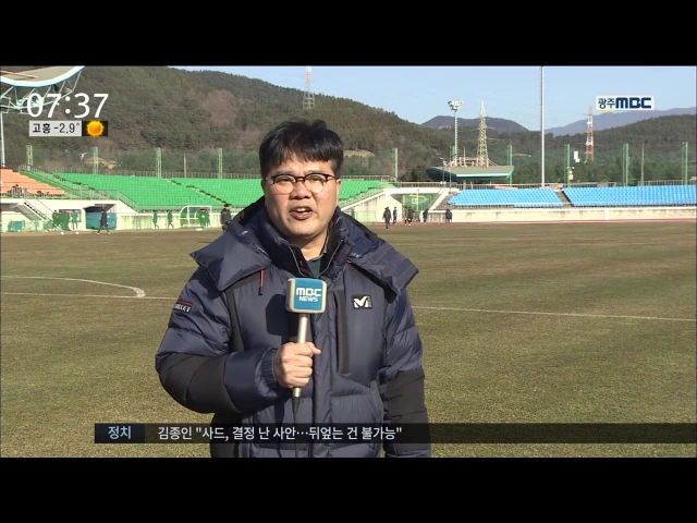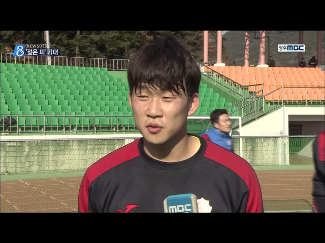 ◀ANC▶ 올 시즌 6강을 목표로 하고 있는 광주 FC가 광양에서 구슬땀을 흘리고 있습니다. 새로 영입한 선수들과 함께 전략과 전술 개발에 한창인데.. 올 시즌 기대를 걸만한 선수들을 이재원 기자가 만나봤습니다. ◀END▶ ◀VCR▶ 전북 현대에서 광주로 유니폼을 갈아입은 24살의 이우혁. 184cm의 장신에다 뛰어난 킥과...