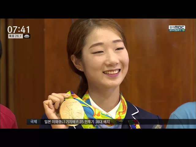 ◀ANC▶ 지구의 반대편인 브라질 리우에서 치러진 여름 올림픽이 오늘로써 막을 내렸습니다. 광주전남 출신선수들도 메달획득에 한 몫을 톡톡히 했는데요, 여자양궁 단체전에서 금메달을 딴 최미선 선수가 모교인 전남 체육중고등학교를 방문했습니다. 김양훈 기자가 취재했습니다. ◀END▶ EFFECT (채널2 음악) 한국 여...