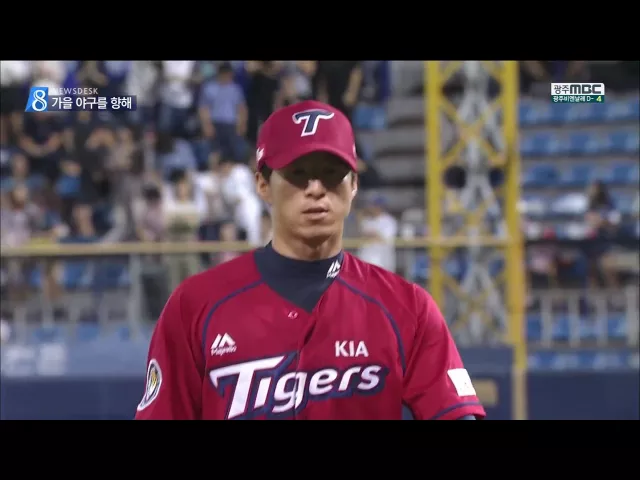 (앵커) 가을 문턱으로 접어들면서 기아타이거즈 마운드가 한층 높아지고 있습니다 여기에 부상 선수의 복귀에다 안치홍도 이번주 말 합류할 예정이어서 .. 가을 야구를 향한 막바지 스퍼트에 도움이 될 것으로 보입니다. 한신구 기자의 보도 (기자) 자신의 잠재력을 마음껏 뿜어내는 역투.. (삼진 ... 삼진 ...) 기아 김윤...
