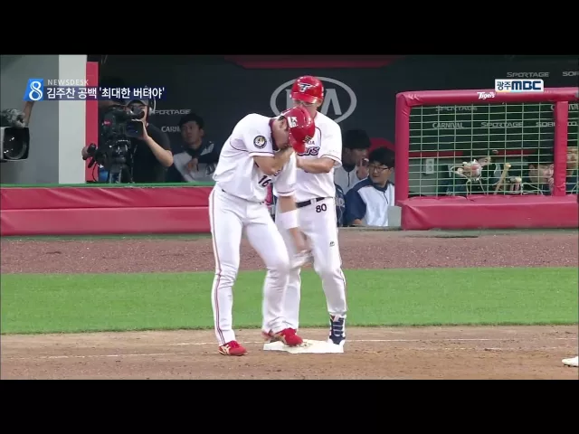 (앵커) 기아 타이거즈, 타선의 중심인 김주찬 선수가 부상으로 최대 한달 정도 결장이 불가피합니다. 복귀 때까지 최대한 버티는 게 가을 야구의 관건이 되고 있습니다. 프로축구 광주 FC 정조국 선수는 시즌 14골로 '득점 선두'로 나섰습니다. 한신구 기자의 보도 (기자) 지난 22일, 상대 투수가 던진 공에 왼쪽 어깨를 얻...