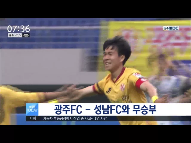 프로축구 광주FC가 광주 월드컵 경기장에서 열린 K리그 15라운드에서 성남FC과 무승부를 기록했습니다. 광주FC는 전반 2분 여름 선수가 선제골을 성공시켰지만 후반 25분 동점골을 내줘 1대1 무승부로 경기를 마치며 순위 7위를 유지했습니다. 광주FC는 오는 26일 광주월드컵 경기장에서 전북현대를 상대로 시즌 6승 도전에...