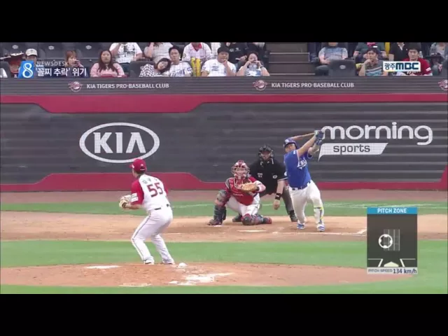 (앵커) 기아 타이거즈가 최근 잇따른 불펜진의 '방화'로 꼴찌 추락 위기에 놓였습니다. 마무리 임창용이 합류하기까지 남은 15경기를 어떻게 버티느냐가 관건입니다. 한신구 기자의 보도 (기자) 기아가 4대 3으로 앞선 7회 초 (6/12일) 선발 헥터를 구원 등판한 이준영이 이승엽에게 동점 홈런을 허용합니다. 그리고 4안타...