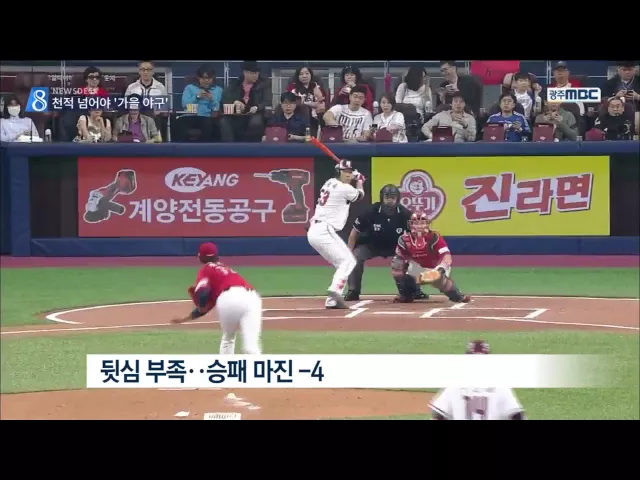 (앵커) 기아 타이거즈가 5할 승률 문턱에서 또 다시 힘없이 주저앉았습니다. NC와 넥센 등 천적과의 승부에서 절대 약세를 보이고 있기 때문입니다. 프로축구 광주 FC는 시즌 첫 3연승 행진에 성공했습니다. 한신구 기자의 보도 (기자) 한 방이면 동점이 되는 순간 ... 허무한 삼진 아웃으로 승패는 갈렸고, 기아는 NC에 주...