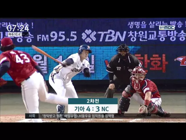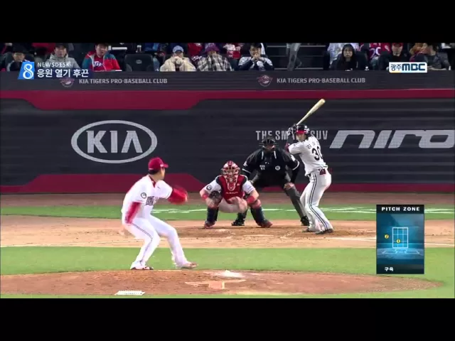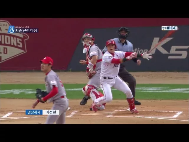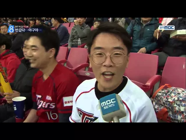 (앵커) 그럼 광주-기아 챔피언스필드를 연결해 현재 상황을 알아보겠습니다. 이미지 리포터, 홈 개막전 응원열기가 뜨거워 보입니다. 지금 누가 이기고 있나요? (기자) 네, 말씀하신대로 지금 광주기아 챔피언스 필드에 야구팬들의 함성이 가득 차 있습니다. 현재 경기가 시작된 지 2시간 정도가 지났는데요 방금 홈런이 터...