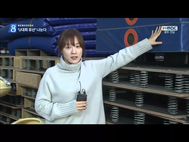 (앵커) 지난 U 대회에서는 육상과 배구 등 다양한 종목의 국제 경기가 치러졌는데요. 경기 때만 썼던 최신 체육용품이 창고에 잠들어있는데, 곧 광주의 경기 팀들에게 나눠질 예정입니다. 김인정 기자입니다. (기자) 거듭되는 육상선수들의 훈련에 너덜너덜해진 스타터 블럭. 오래된 허들은 녹이 슬고 부러져 테이프로 응급...