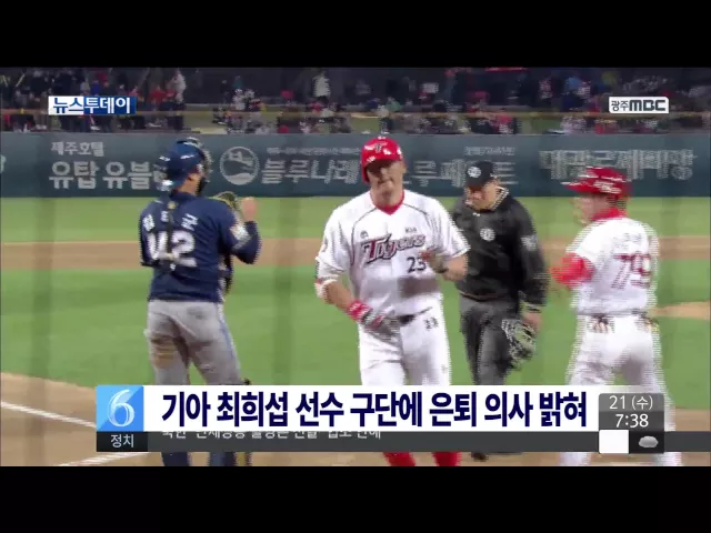 기아 타이거즈의 최희섭 선수가 은퇴 의사를 밝혔습니다. 최희섭 선수는 최근 구단측과의 면담에서 부상당한 허리가 나아지지 않아 선수 생활이 어려울 것 같다는 뜻을 전했습니다. 최 선수의 은퇴 여부는 구단과의 추가 면담 이후에 최종 결정될 것으로 보입니다. 한편 서재응 선수는 내년 시즌을 잘 준비하겠다고 구단 측...