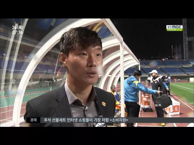 ◀앵 커▶ 스포츠투데입니다. K리그 클래식 32라운드, 광주와 전북의 경기가 열렸는데요. 광주는 리그 1위 전북을 상대로 잘 싸웠지만 아쉽게 고개를 떨궜습니다. 전반 김호남이 선제골을 터뜨렸지만 2분만에 이동국에게 동점골을 허용하고, 경기 종료 직전 또 이동국에게 역전골까지 내주며 1-2로 패했습니다. 리그 11위 부...