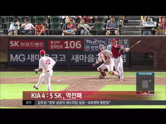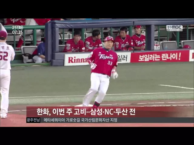 어제 완봉패를 당한 기아 타이거즈가 설욕전을 펼치고 있습니다. 광주 기아 챔피언스 필드에서 열리고 있는 한화화의 경기에서 6회 현재기아가 한화에 3대 4로 지고 있습니다. 오늘 경기에서 이기는 팀이 5위가 되기 때문에 양 팀이 총력전을 펼치고 있습니다. 한편 광주 월드컵경기장에서는 이시각 현재 K리그 8위인 광주F...