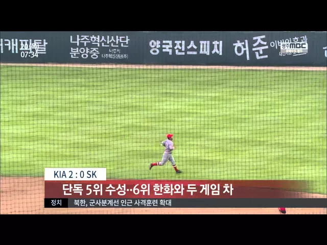 ◀앵 커▶ 스포츠투데입니다. KIA타이거즈 지키는 야구를 보여줬습니다. 선발부터 마무리까지 안정된 마운드를 선보이며, 승리도 지키고 순위도 지켜내며 5위 굳히기에 들어갔습니다. 연속 협살 성공으로순식간에 두 개의 아웃카운트를 잡아냅니다. 승리의 여신은 일찍이 KIA를 향해미소짓고 있었습니다. 공격의 시작과 함께 ...