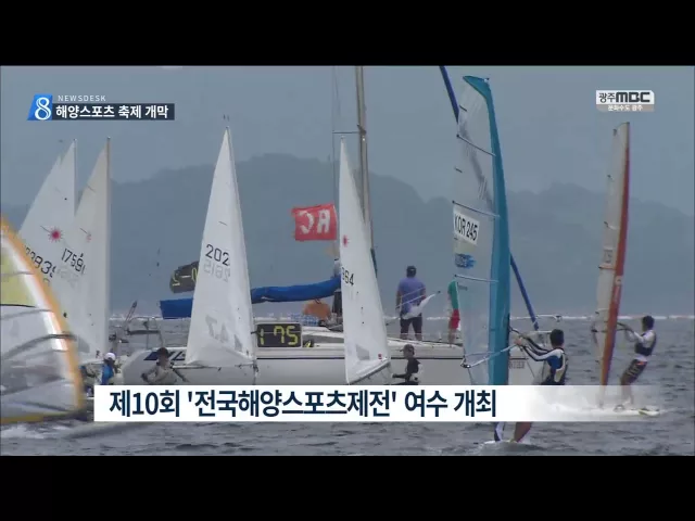 ◀앵 커▶ 국내 최대 규모의 해양스포츠 축제죠. 전국 해양스포츠제전이 여수에서 시작됐습니다. 권남기 기자입니다. 탁 트인 남해를 시원하게 가르는 요트 행렬. 선수들은 요트에 몸을 맡긴 채 서로 앞다퉈 나아갑니다. ◀ / 요트선수 ▶ 올해로 열 번째인 전국해양스포츠제전이 여수세계박람회장에서 열렸습니다. 이번 대회에...