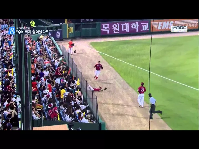 ◀앵 커▶ 요즘 야구 보는 재미에 빠진 분들이 많습니다. 역전 드라마를 쓰며 6연승을 달리고 있는 기아 선수들은 명품 수비까지 선보이며 팬들을 열광시키고 있습니다. 정지성 스포츠캐스터입니다. (현장 중계 화면) 내야를 훌쩍 벗어나는 텍사스 안타성 타구를 몸을 날려 잡아냅니다. 공을 잡고도 스스로 놀라는 표정이 고...