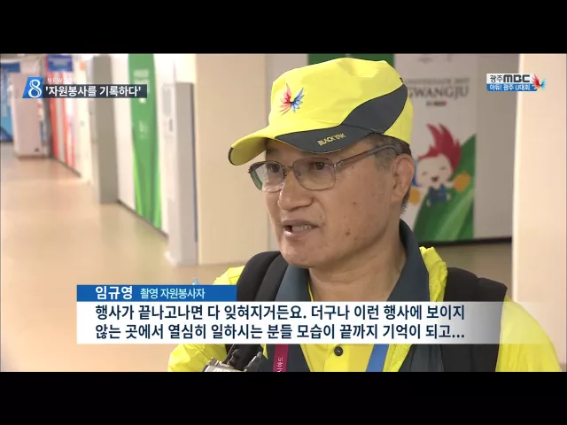 (앵커) 자원봉사는 축제에 참여하는 또 다른 방식이었고, 봉사자들은 대회를 빛낸 숨은 주인공이기도 했습니다. 이들의 모습을 기록하는 자원봉사자도 있었다는데요. 김철원 기자가 만났습니다. (기자) 카메라를 든 중년의 자원봉사자들이 오늘도 선수촌에 나타났습니다. "U대회가 오늘 끝나잖아요. 지금까지 느낀 점, 소감...
