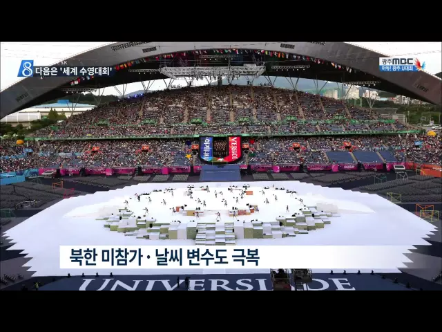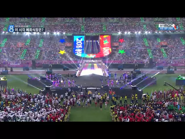 (앵커) 광주 U대회 마지막 날, 마지막 공식 행사죠. 지금 주경기장에서는 폐회식이 진행되고 있습니다. 현장 연결합니다. 송정근 기자? 지금 그 곳 분위기 전해주시죠. (기자) 네, 빛고을을 뜨겁게 달궜던 광주 하계 유대회가 막을 내렸음을 알리는 폐회선언이 조금전에 끝났습니다. 지금은 차기 개최지인 대만 타이페이에 ...